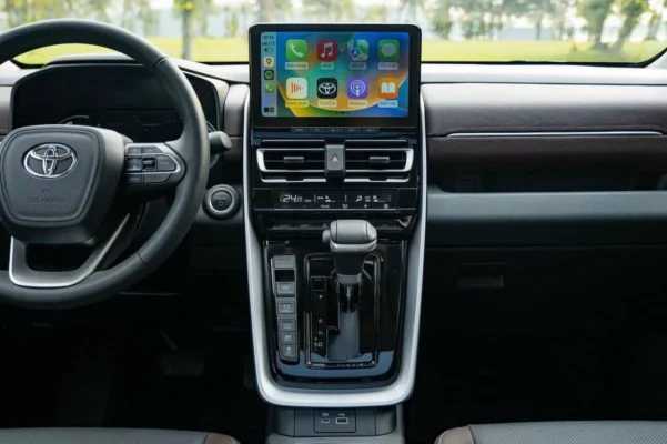 Màn hình giải trí trên Toyota Innova Cross 2.0G có kích thước 10,1 inch, hỗ trợ kết nối không dây với điện thoại thông minh, bao gồm Apple CarPlay và Android Auto, mang đến tiện nghi hiện đại cho người dùng. Bên cạnh đó, cần chuyển số được bố trí ngay sau vô lăng, giúp người lái thay đổi số nhanh chóng, dễ dàng và an toàn hơn.